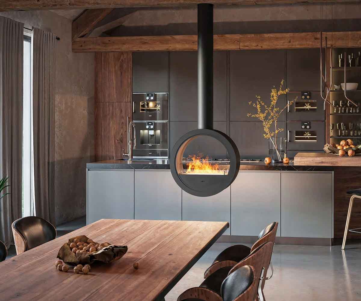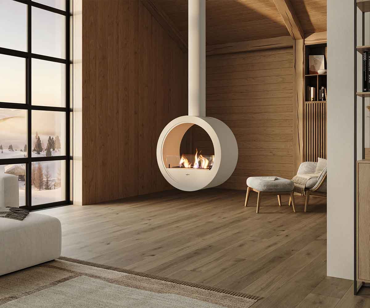 Der Incyrcle 2Side, das an der Decke hängende Modell der Incyrcle-Reihe, besticht durch seine ausdrucksstarke, runde Form und passt ideal in moderne, urbane oder Loft-Umgebungen. Er kombiniert Stil, Mobilität und echtes Flammenspiel – ganz ohne Schornstein oder feste Anschlüsse.