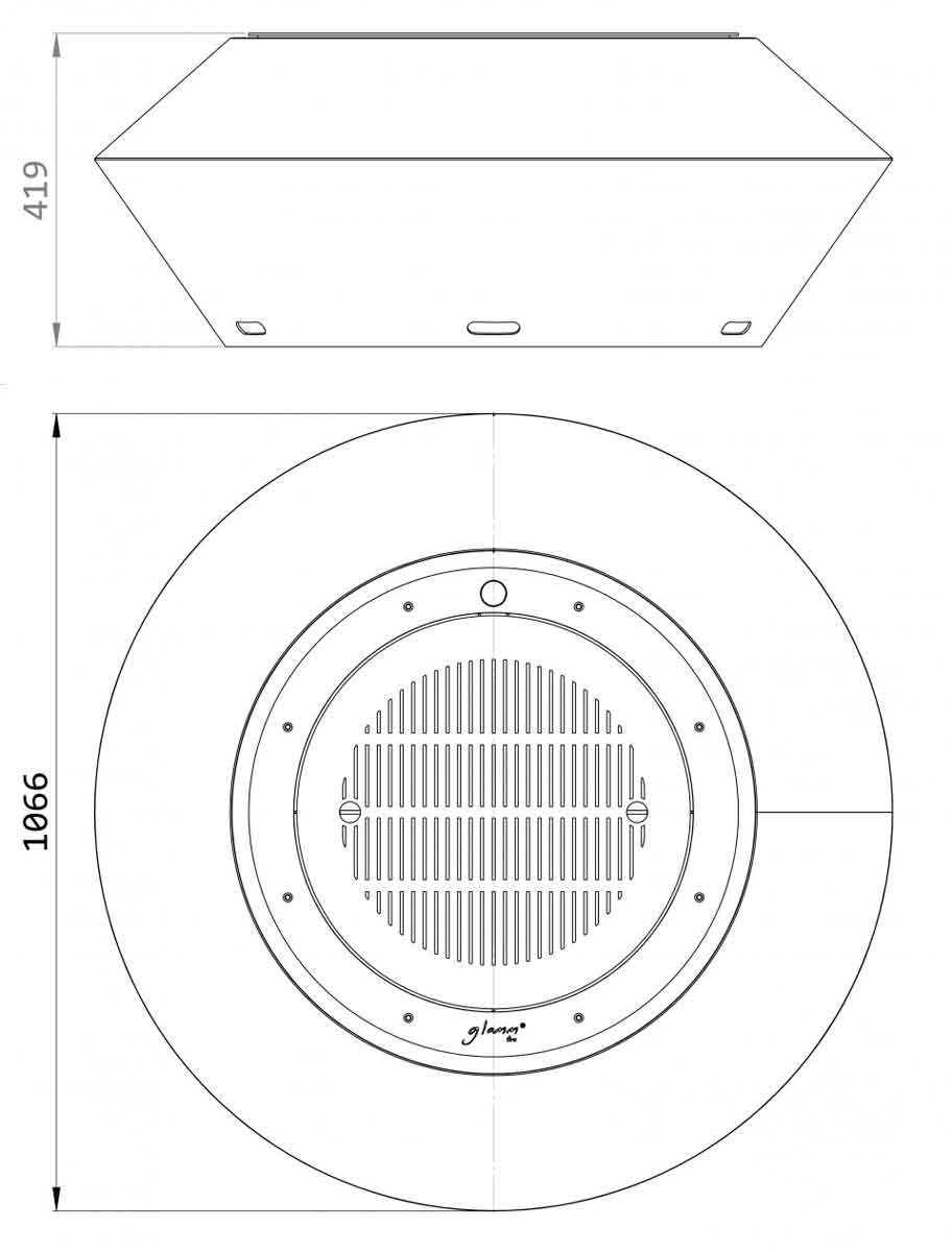 Enthalten: Feuerstelle Operetta inklusive Burner I rund mit Schutzglas niedrig, Schutzhaube