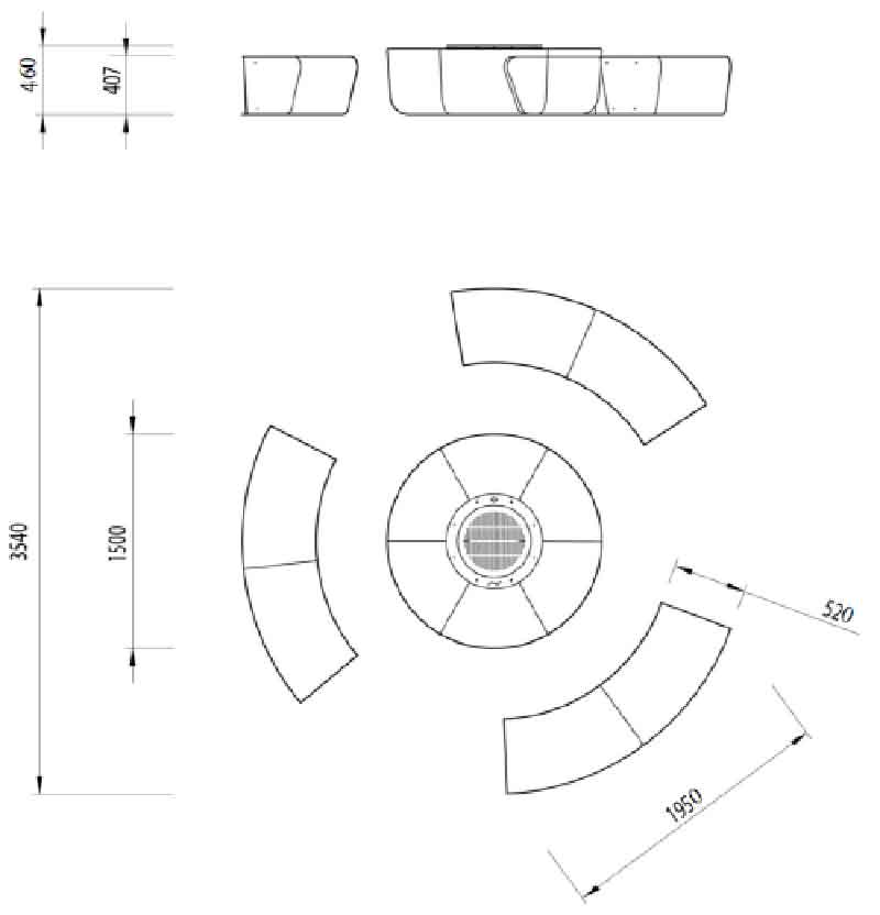 Robuste Dimension & Gewicht: Ø ca. 1500 mm, Höhe ca. 46 cm. Gewicht ca. 600 kg (ohne Bänke).