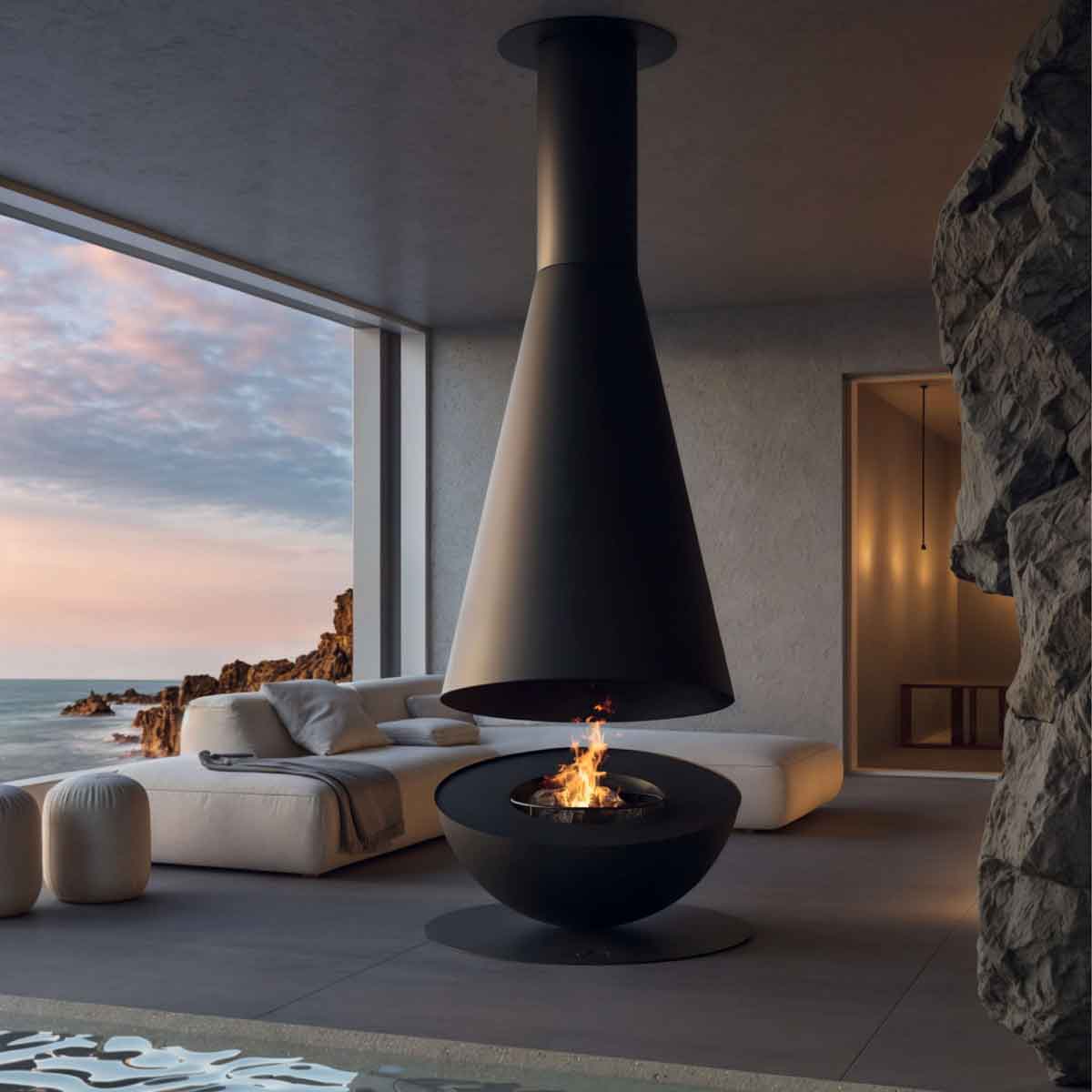 Topmoderner Hänge-Kamin für die Veranda oder den Wintergarten.