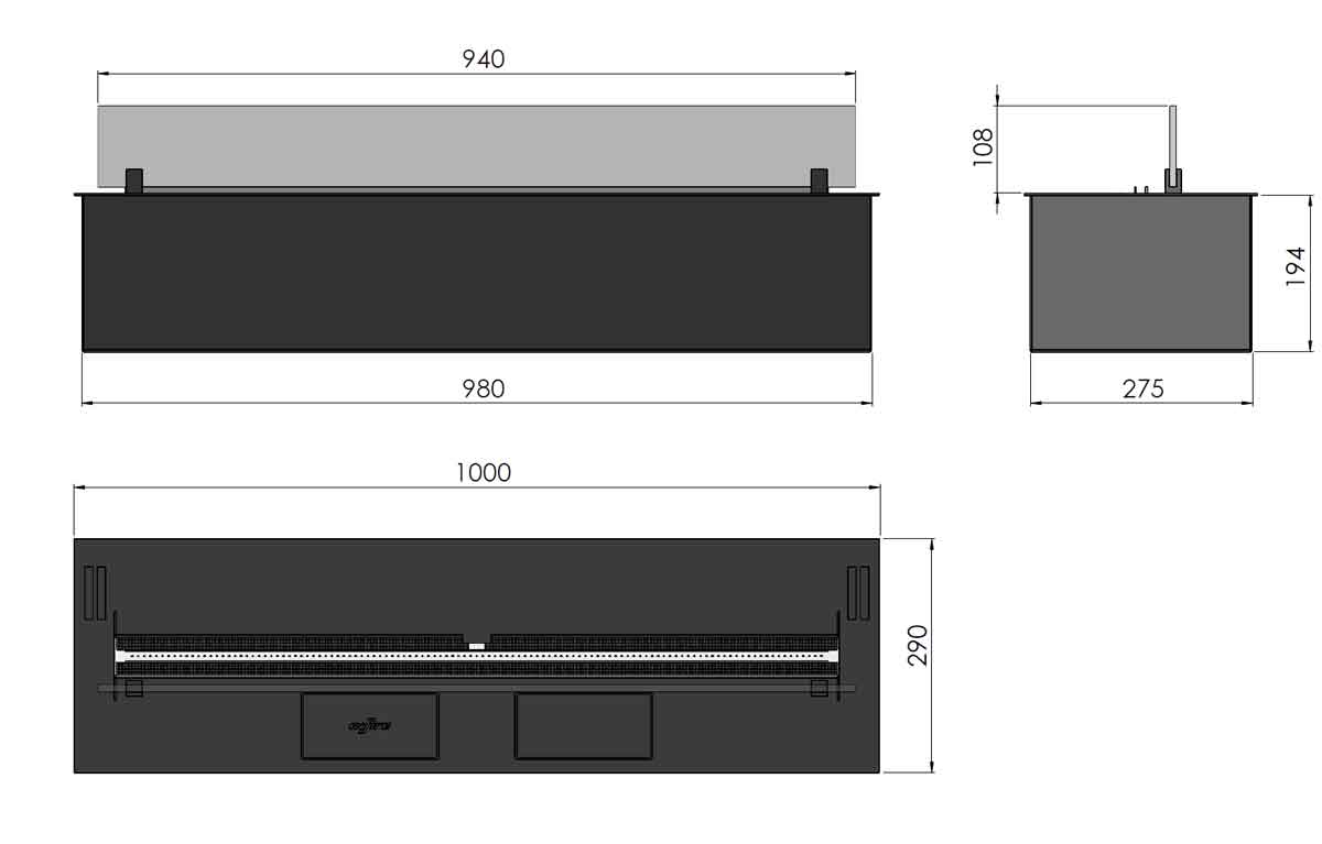 - Maße BxHxT: 1000 x 194 (+108) x 290 mm