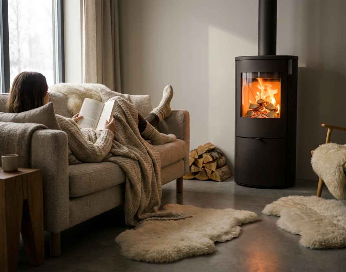Der Kelio ist klar als Möbelstück und als Wärmequelle konzipiert. Das hohe Fenster bietet einen großzügigen Blick auf das Feuer, während das schlichte Design für Ruhe im Raum sorgt. Egal, ob Sie ihn in der Nähe der Sitzecke oder in einem offenen Wohnraum platzieren, der Ofen wird schnell zum natürlichen Mittelpunkt des Raumes.