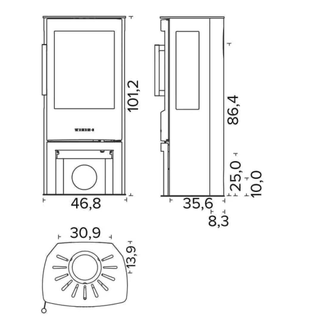 - Rauchabzug: Oben oder hinten (bei hinterem Rauchabzug optional mit Abdeckplatte erhältlich)
