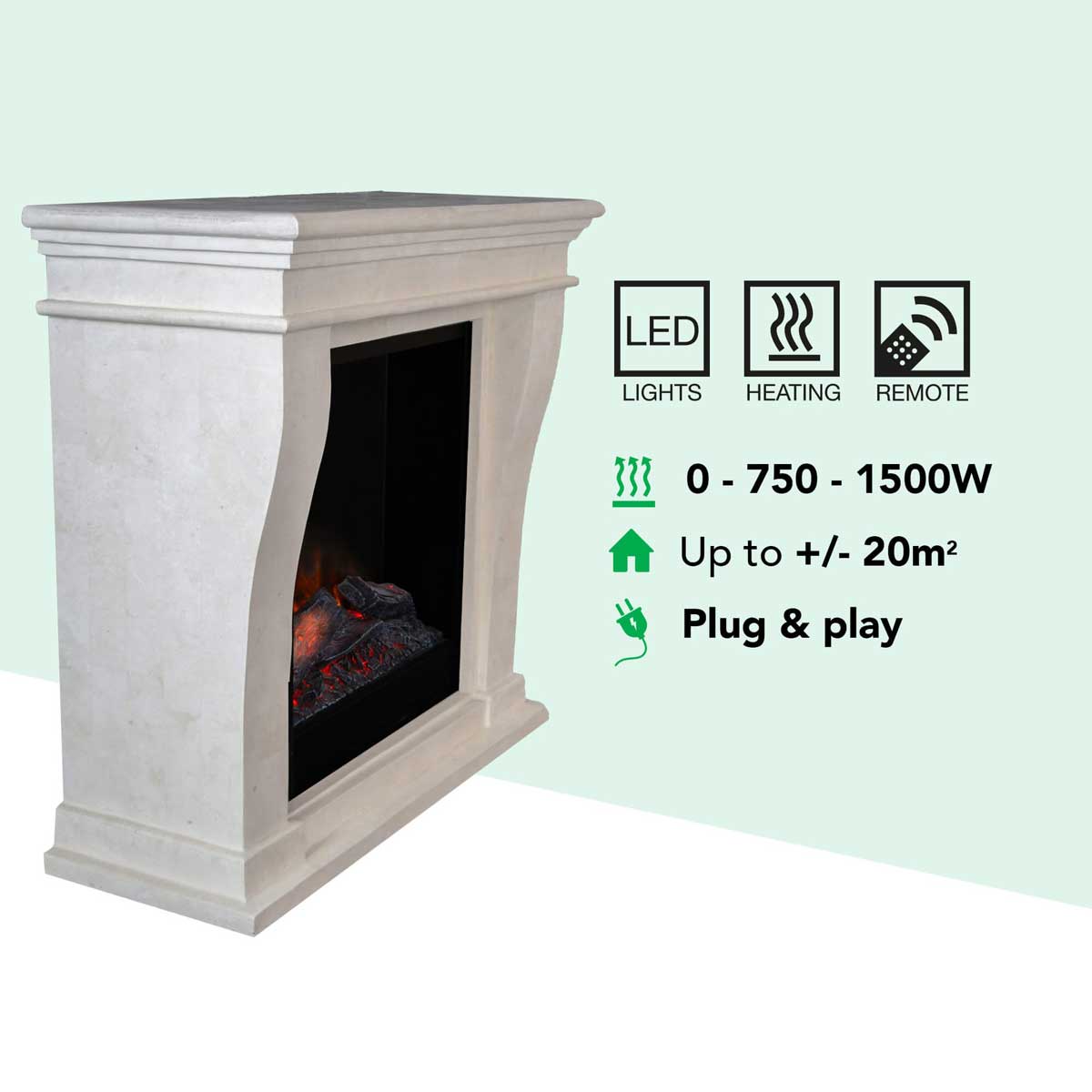 Xaralyn Kreta Mini – Elektrokamin aus Naturstein mit Levico-Elektrofeuer