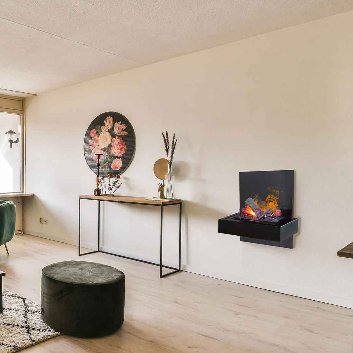 Xaralyn Quero – Elektrokamin für die Wand mit verschiedenen Rückwänden und mit Opti-Myst Flammenspiel