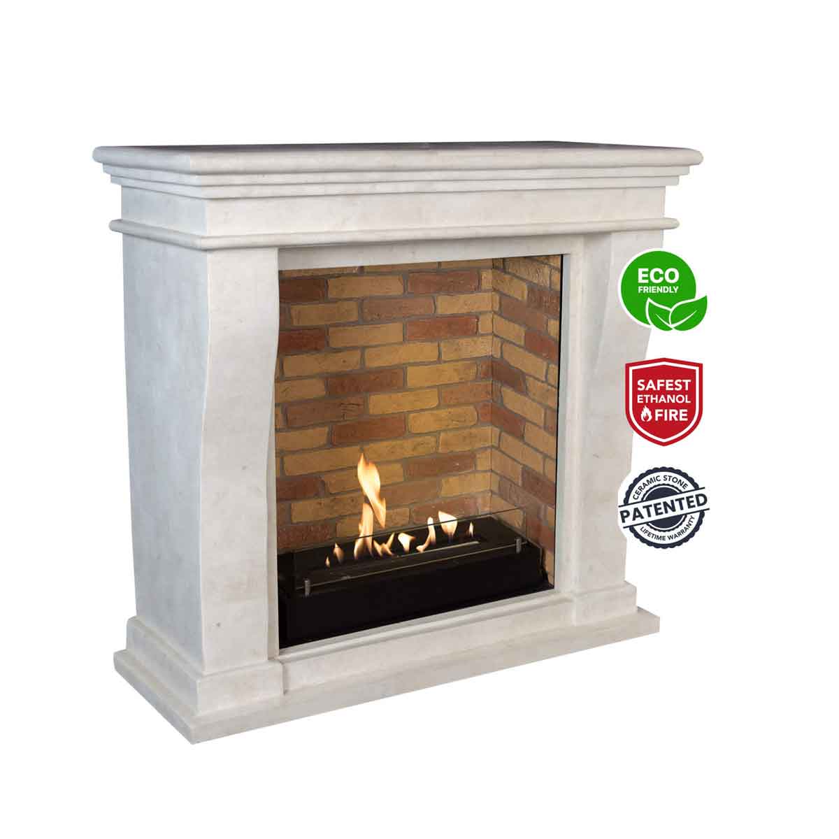 Xaralyn KRETA MINI Stein Weiß/Dekor – Ethanolkamin aus Naturstein mit natürlichem Flammenspiel