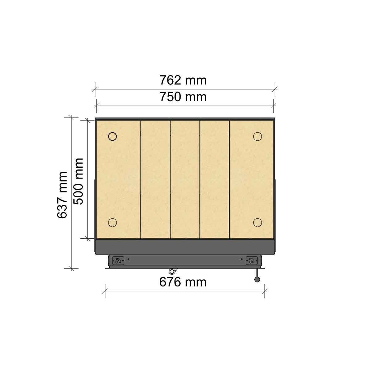 Optional: BRULA modular ceiling flue system complete, modular flue blocks, cast iron connection spigot, assembly mortar for complete firebox type C Plus including 90° combustion chamber exhaust block (top exhaust), cleaning openings optionally on the right, left or front. Weight: 290 kg