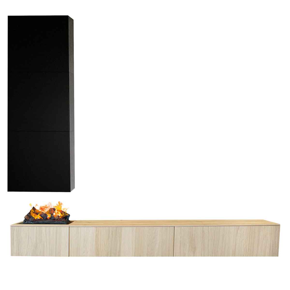 The Jörne Long electric fireplace consists of a furniture-panel body and is part of a furniture concept with four different finishes. It is perfect as a decorative fire element in the living room, dining room, or office. The sideboard offers ample storage space: the two left-hand compartments fold down for easy access – ideal for storing appliances, accessories, or other items.