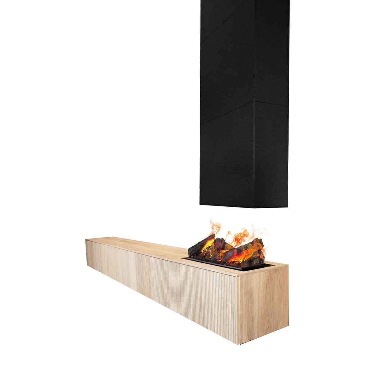 Virtually indistinguishable from a real fire. Authentic flames and smoke - just no fire or smoke. Can be connected everywhere with normal power outlet. Low energy consumption, electric heating possible.