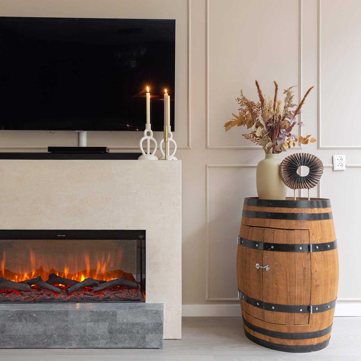 At the heart of the fireplace, the Levico 90 creates an impressively realistic flame image. LED lighting creates a deceptively realistic fire effect – completely without fire, soot, or odor. Since no chimney or flue is required, the Santos can be flexibly placed in almost any room – even in homes or commercial properties.