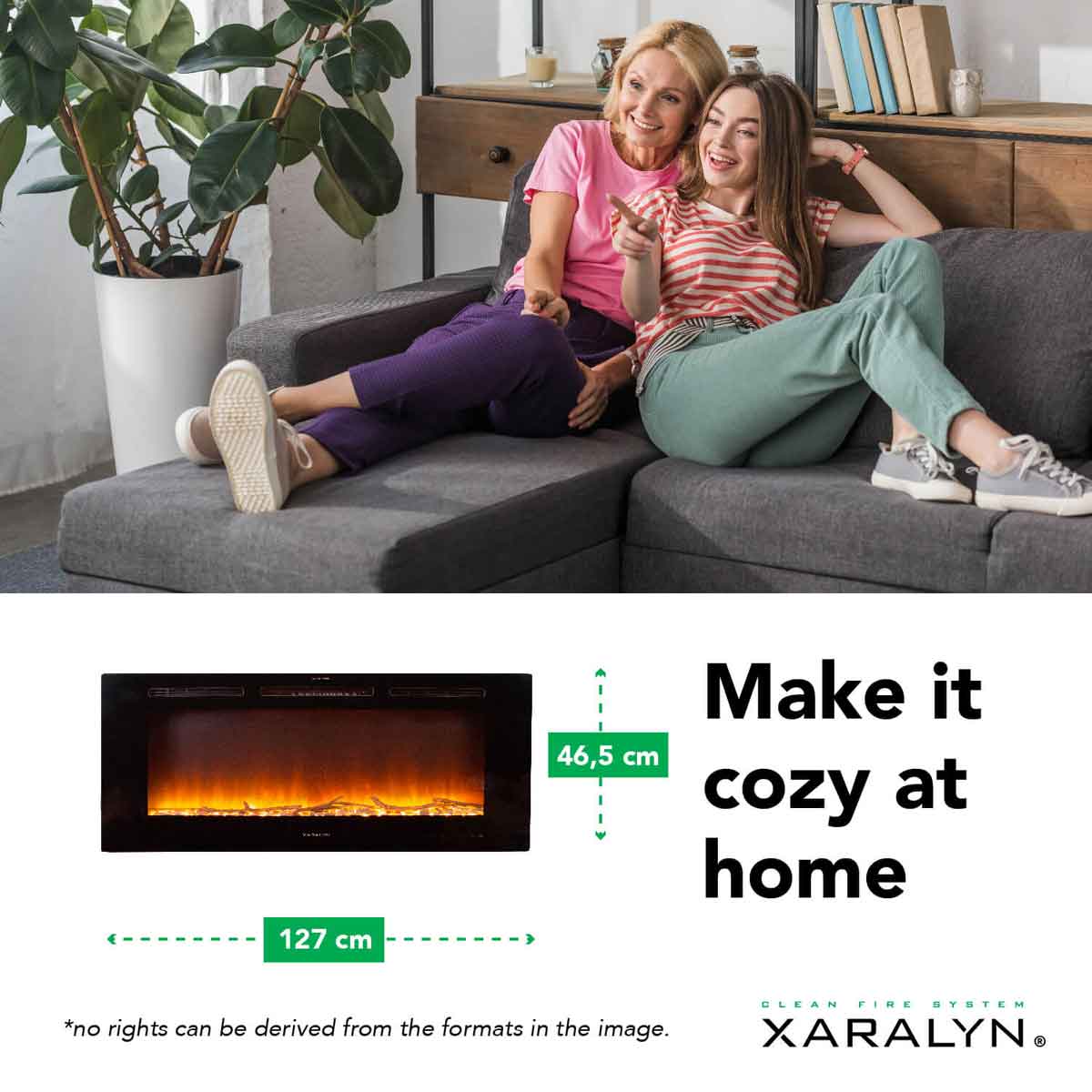 The Xaralyn Trivero 130 FH is a modern electric wall-mounted fireplace with a width of 130 cm – perfect for use under a television or as a centerpiece in a home theater. With its stylish design and innovative LED technology, this fireplace creates a warm, cozy atmosphere without smoke, soot, or a chimney. With SMART technology and switchable heating.