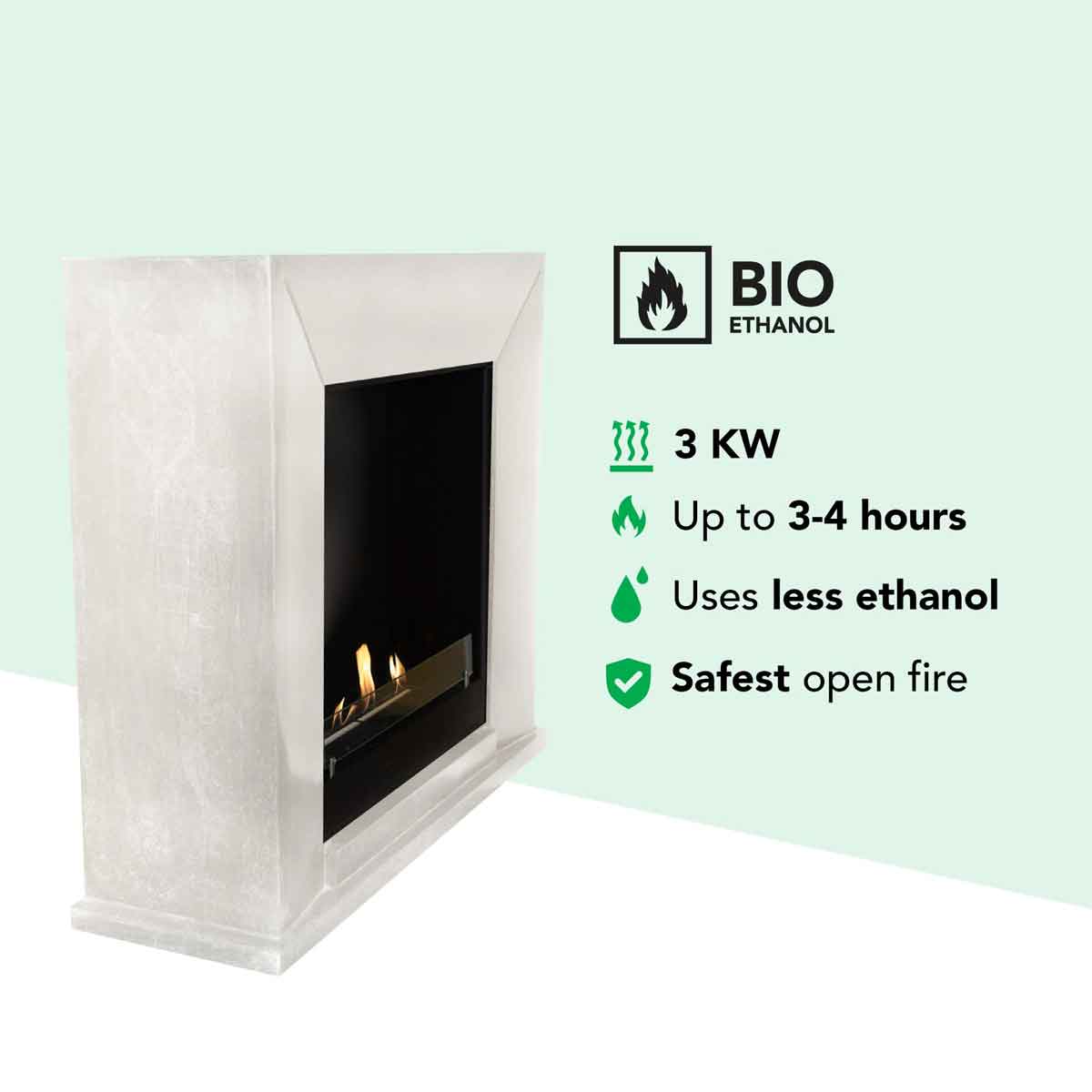 Bioethanol burns without residue, odor, or soot. This creates a cozy, exclusive atmosphere in your rooms with a real fire, completely without smoke or ash.