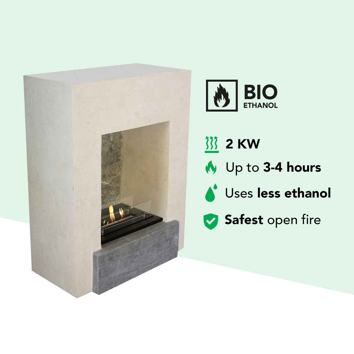 Bioethanol burns without residue, odor, or soot. This creates a cozy, exclusive atmosphere in your rooms with a real fire, completely without smoke or ash.