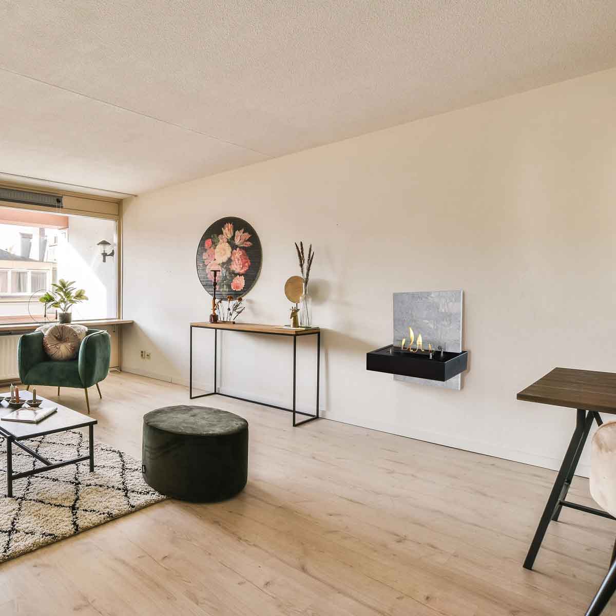 Setting up the fireplace is straightforward and can be done yourself (only the weight requires some care). Since no chimney or connection is needed, the fireplace can be placed anywhere – whether in rented apartments, conservatories, party rooms, or offices.